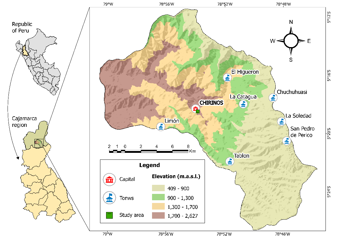 33. Merkel A. Climate of Chirinos (Peru) (Spanish). Available online: https://es.climate-data.org/search/?q=chirinos (accessed on 27 June 2024).